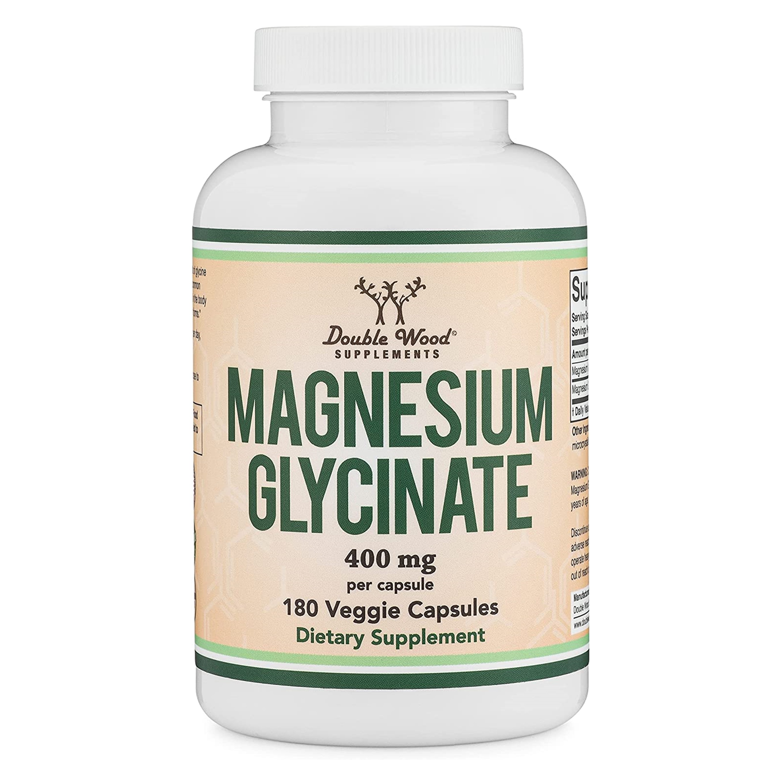 Magnesium Glycinate 400mg, 180 Capsules – Vegan Safe,High Absorption Magnesium by Double Wood Supplements