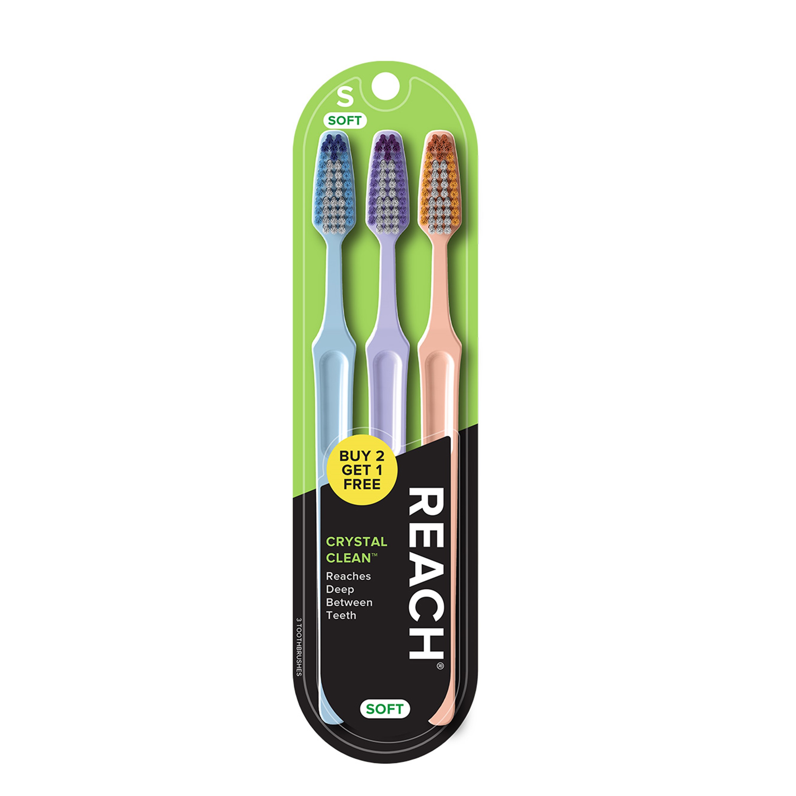 REACH Crystal Clean Toothbrush with Soft Bristles, 3 Count